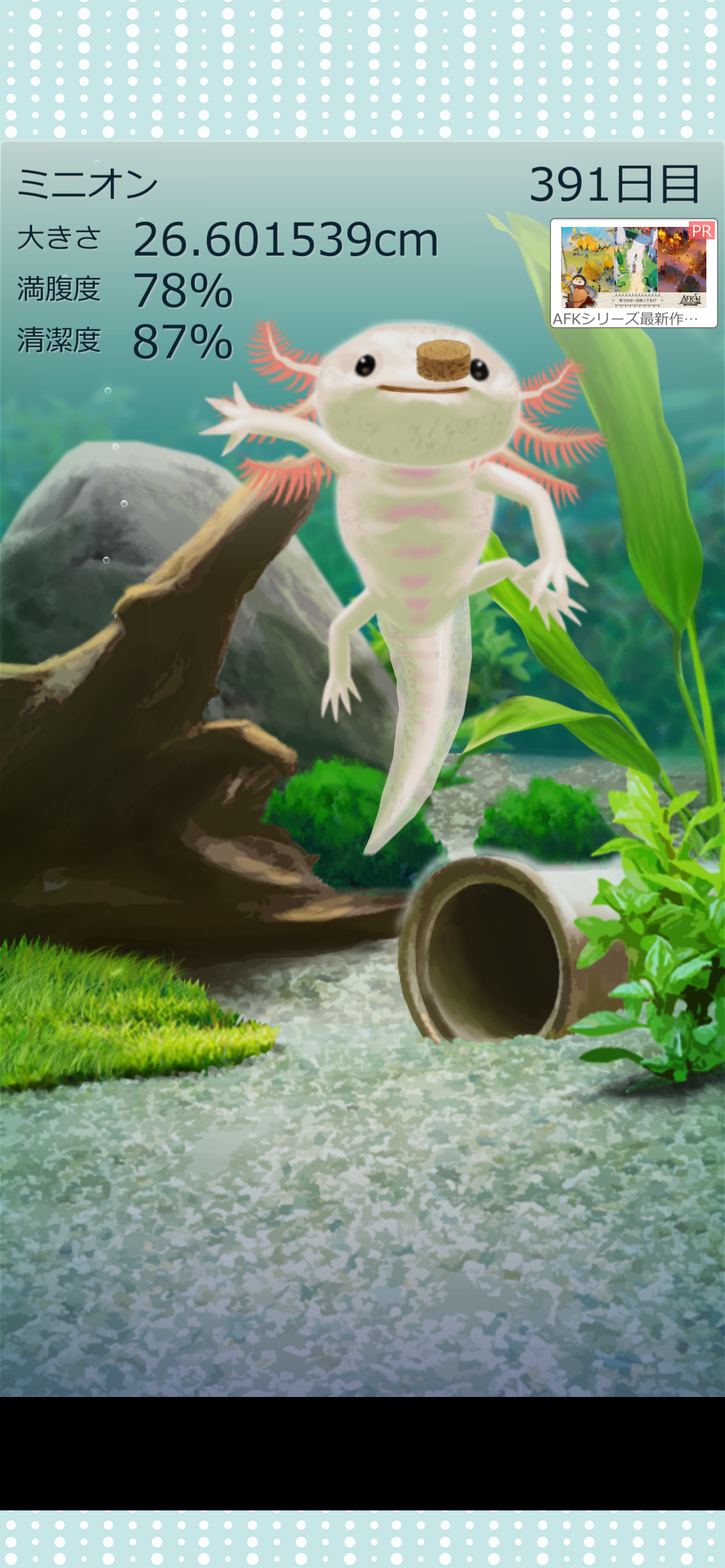 スマホのアプリで実はウーパールーパーを育てているんです!