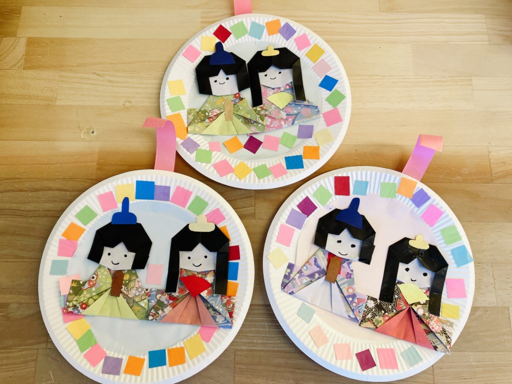 雛祭りは、少しいつもと雰囲気を変えて、紙皿を利用した飾りにしてみました。