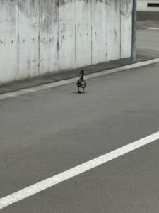 カモさんはどこかのおうちの裏に逃げて行ったので、飼いカモだったのかな?