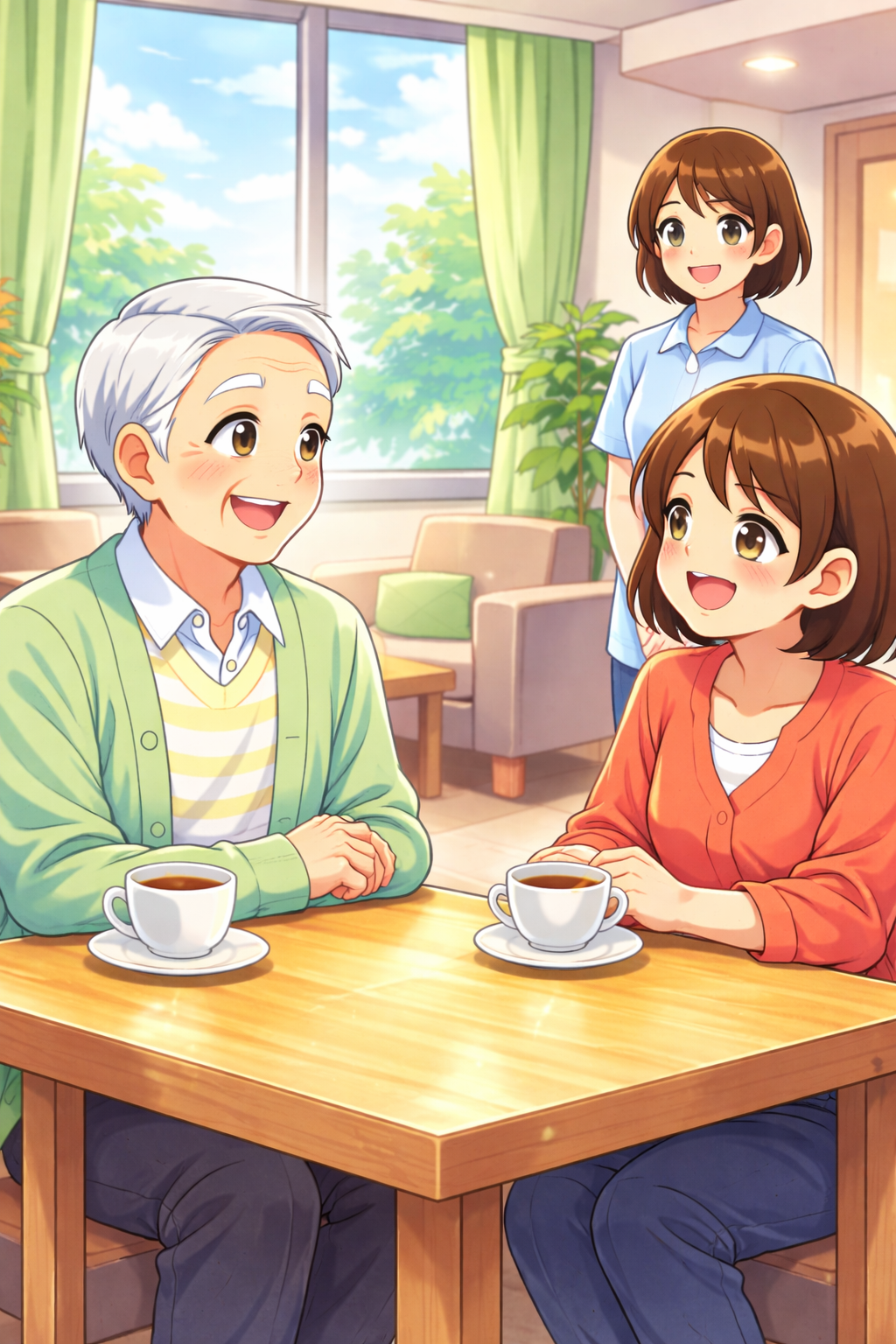 A様のもとへ、ご家族が面会にいらっしゃいました。久しぶりというわけではなく、いつも通りの訪問。けれど、その日のA様は、いつもより少し表情がやわらいで見えました。